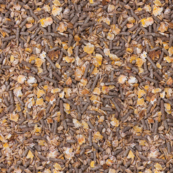 Die Kombination aus Flocken und Pellets bildet eine gesunde und ausgewogene Basis und macht die Zugabe von weiteren Krippenfuttermitteln überflüssig.