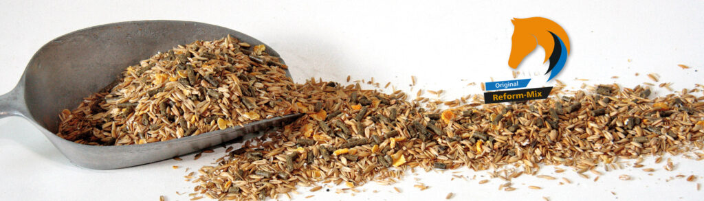 Original Höveler Reform-Mix ist ein bekömmliche Allzweck-Mischung für Pferde. Die energiereiche Fertigmischung für die Krippe besteht aus Hafer, Getreideflocken und Pellets – einer Kombination aus speziell aufbereitetem Getreide mit einem pelletierten Mineral- und Vitaminergänzer.