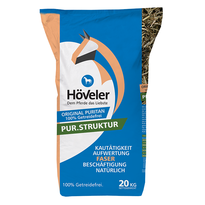 Dementsprechend kann eine angepasste Fütterung von PUR.STRUKTUR erfolgen um den Bedarf des Pferdes an kaufähiger Rohfaser sicherzustellen.