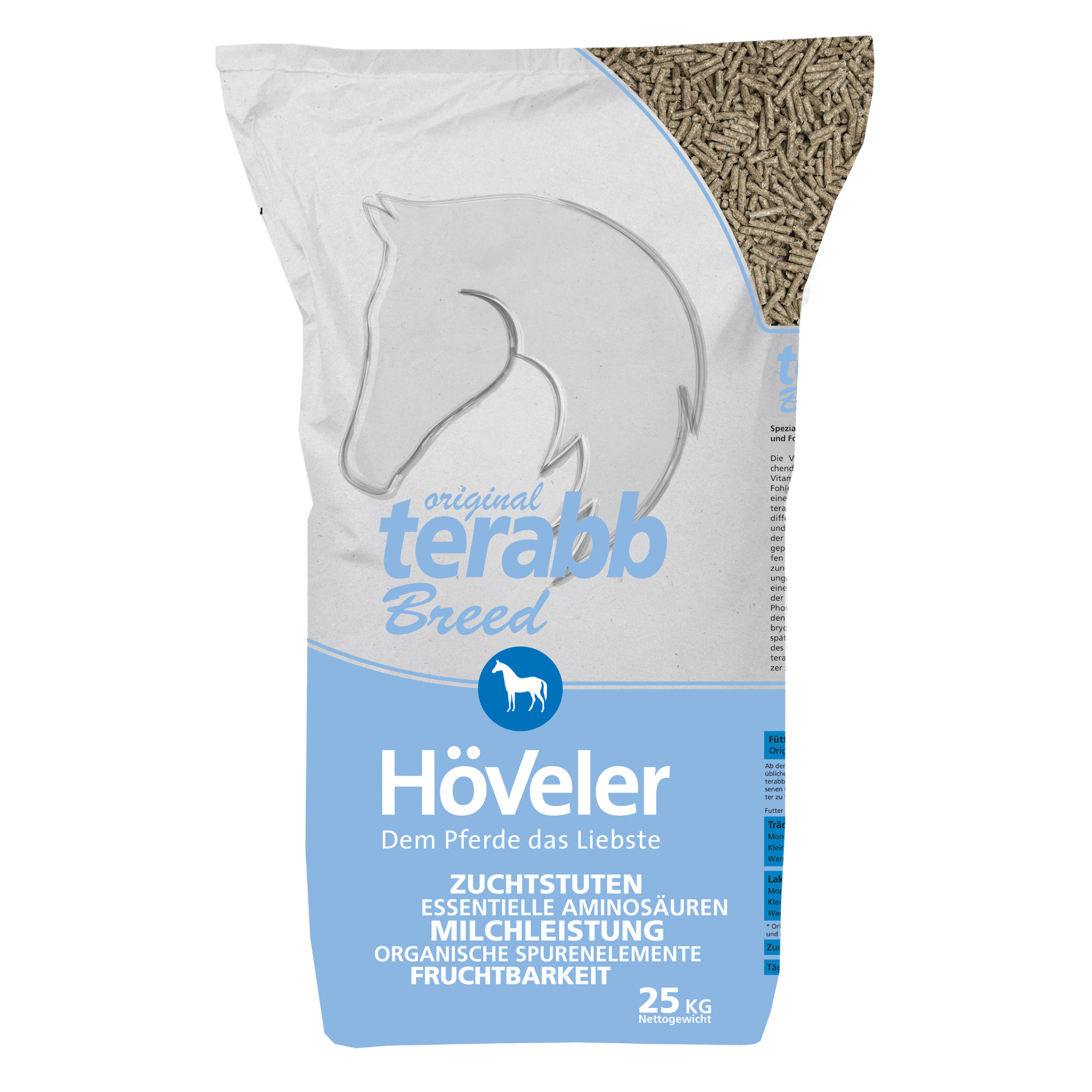 Die Versorgung der Stute mit ausreichend Energie, Eiweiß, Mineralstoffen und Vitaminen spielt für die Entwicklung des Fohlens und für die Milchproduktion eine entscheidende Rolle. Original terabb Breed wurde speziell auf den sehr differenzierten Bedarf hochträchtiger und laktierender Stuten sowie wachsender Fohlen abgestimmt. Der bedarfsangepasste Gehalt an Eiweiß und Nährstoffen schafft damit die Grundvoraussetzung für die Entwicklung des ungeborenen Fohlens und unterstützt die Milchproduktion bei der säugenden Stute. Die Calcium- und Phosphorgehalte in terabb Breed decken den erhöhten Bedarf während der embryonalen Skelettentwicklung und des späteren Knochenwachstums. Aufgrund des weiten Ca:P-Verhältnisses eignet sich terabb Breed auch als optimaler Ergänzer zu Getreide.