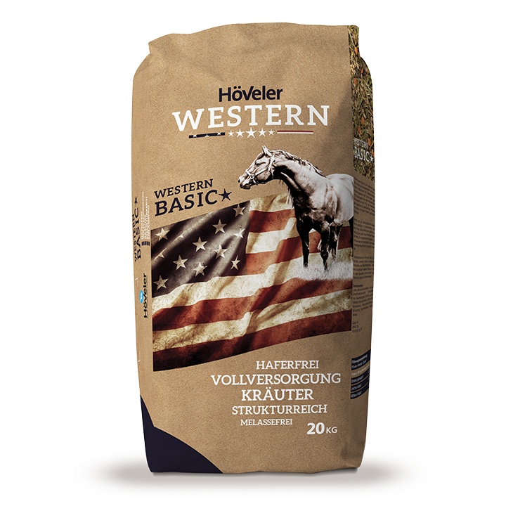 Höveler Western Basic ist ein vollwertiges Müesli und zeichnet sich durch einen geringen Energiegehalt sowie moderaten Stärkegehalt von nur 13 % aus. Hierdurch ist Western Basic besonders für leichtfuttrige Pferde oder solche mit weniger Arbeit geeignet. Die strukturreiche Rezeptur fördert die Kautätigkeit des Pferdes und somit das Einspeicheln des Futters. In Kombination mit dem hohen Aufschlussgrad der Getreidekomponenten, die vollständig im Dünndarm des Pferdes verdaut werden und der Reduktion an Kohlenhydraten, bietet Western Basic so eine leicht verdauliche Müesli-Mischung.
